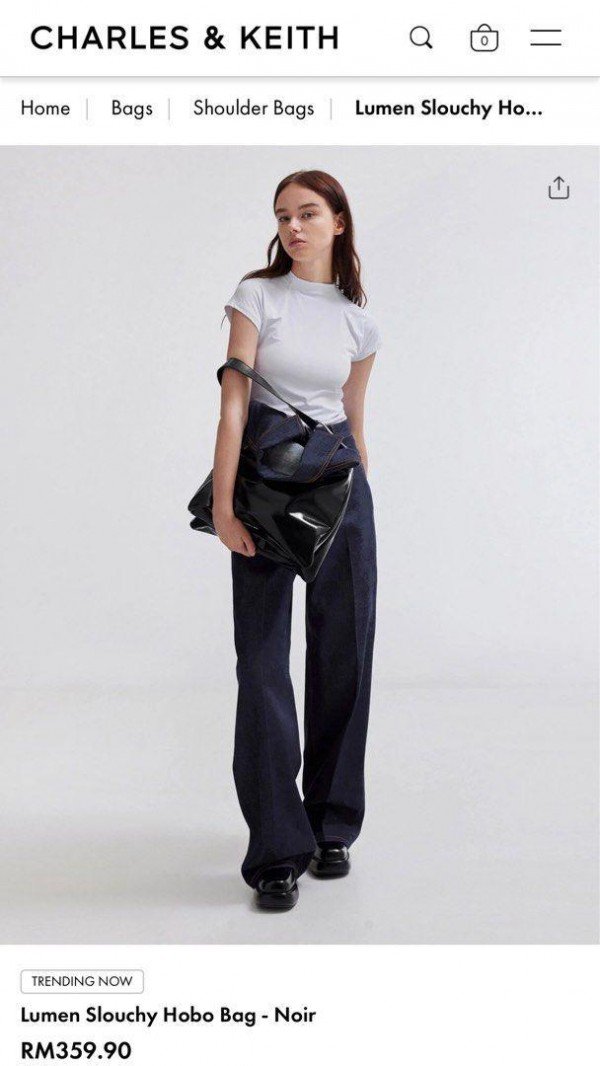 CHARLES & KIETH LUMEN HOBO BAG (BLACK)(38 CM-LONG)