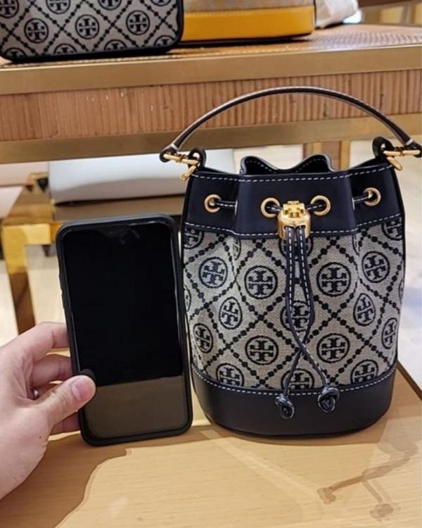 TORY_ T MONOGRAM JACQUARD BUCKET BAG WITH BOX
